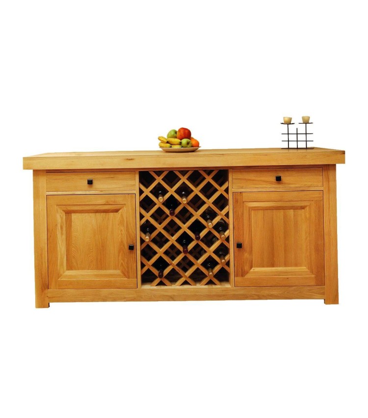 Bufet Abusson lemn masiv stejar, 2 uși, 2 sertare si suport pentru sticle, 188.4 x 49 x 91.2 cm