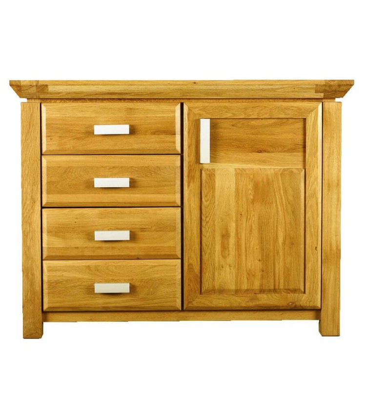 Bufet Temple lemn masiv stejar, 1 ușă și 3 sertare, 105 x 45 x 82 cm
