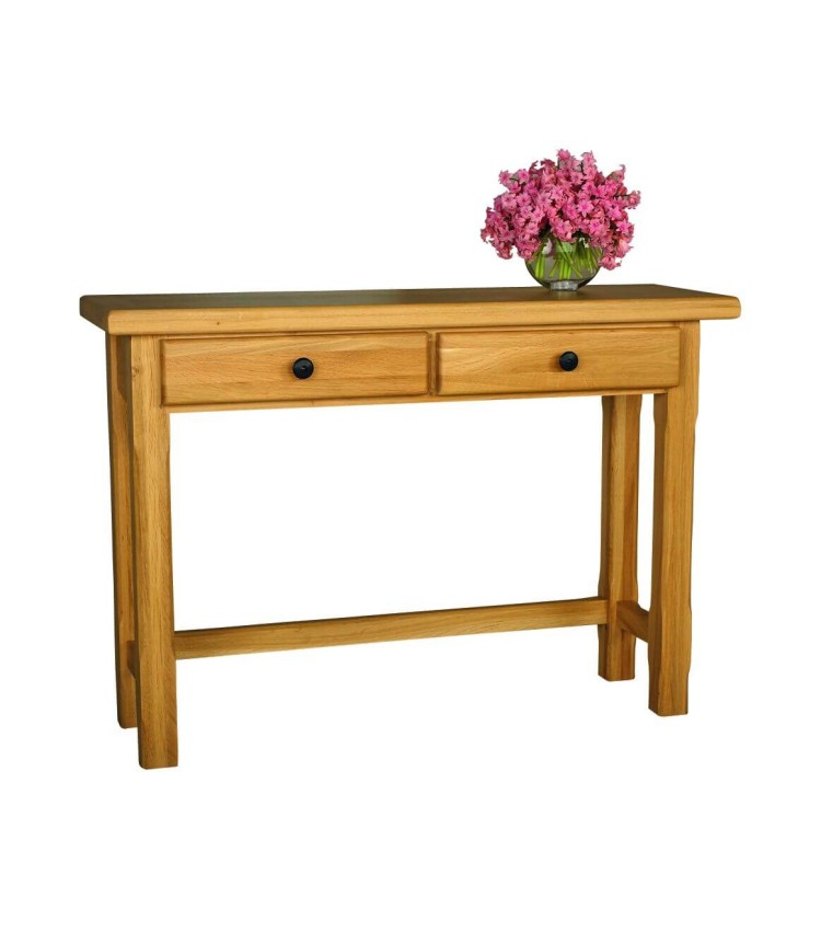 Consola Country cu 2 sertare, lemn masiv stejar, 110 x 35 x 77 cm